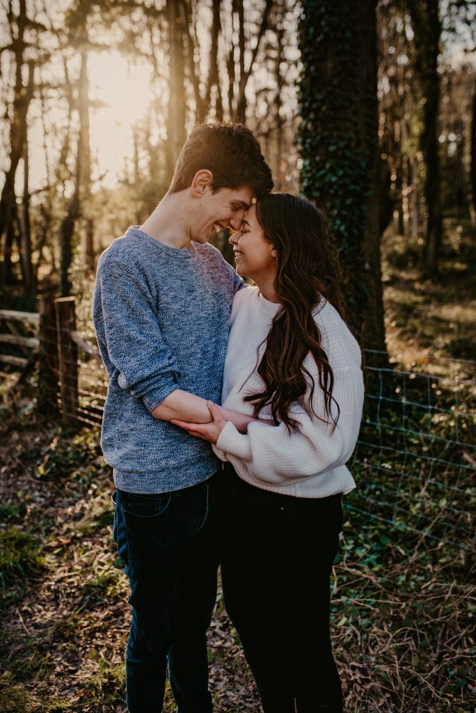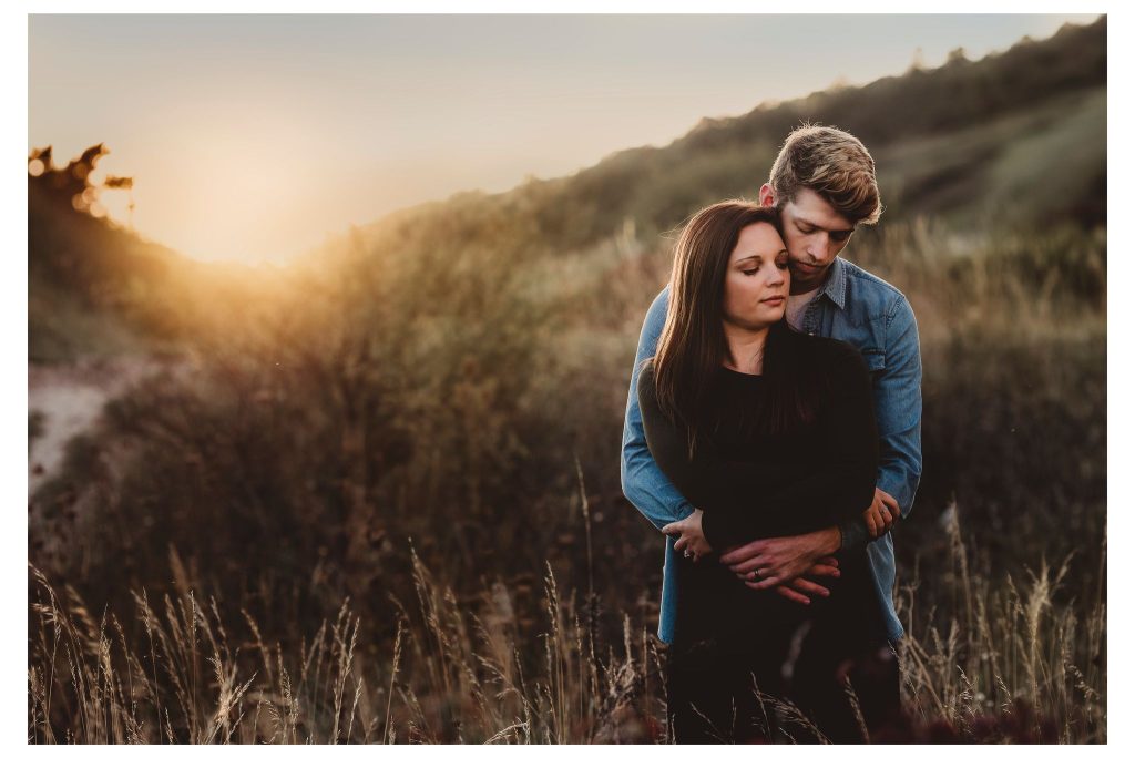 Golden hour (just before sunset) provides soft, flattering light that feels warm and dreamy. It’s ideal for relaxed evening sessions, especially at the beach or in open countryside.